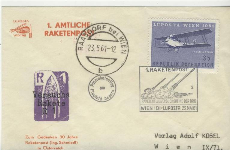 Da die österreichische Post das Monopol auf die Postzustellung hielt, wäre eine Postraketen-Linie vorerst ohnehin undenkbar gewesen. Um sich die kostenintensive Entwicklungsarbeit zu finanzieren, verkaufte Schmiedl eigene Vignetten und mitbeförderte Poststücke an Briefmarkensammler. Auf dem Spezialgebiet der sogenannten Aerophilatelie werden Raketenpostbriefe noch heute hoch gehandelt.